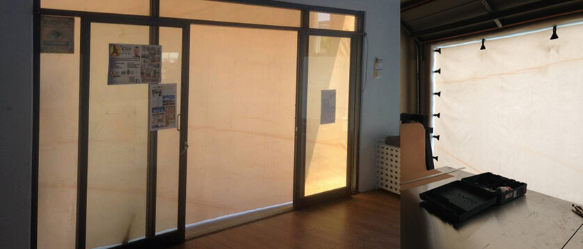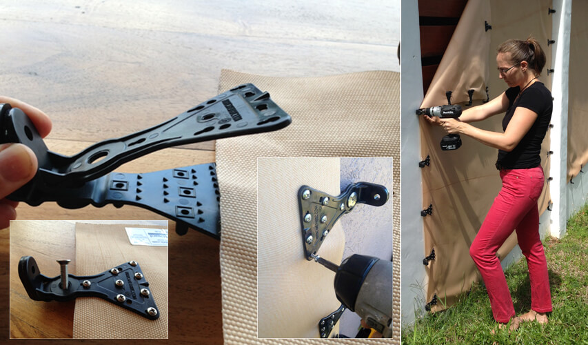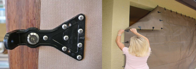 The lightweight fabric is rapidly attached to hollow, threaded wall anchors that are left in place after the installation.