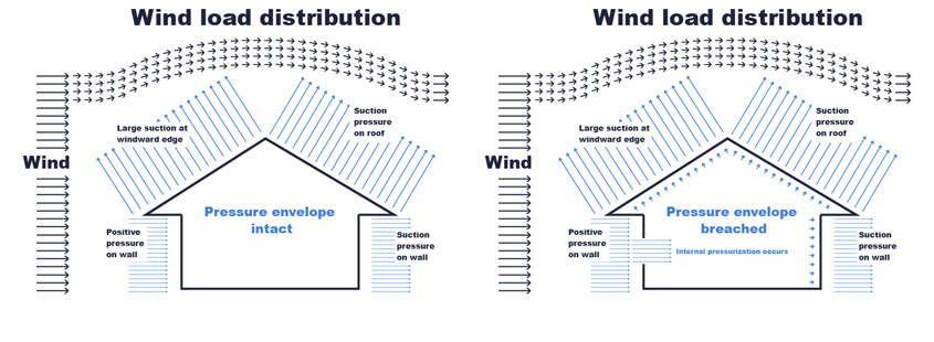 Pressurisation occurs when a window or door is damaged leading to a breach of the pressure envelope. The sudden change of pressure within the structure can precipitate rapidly evolving and sometimes catastrophic consequences.
